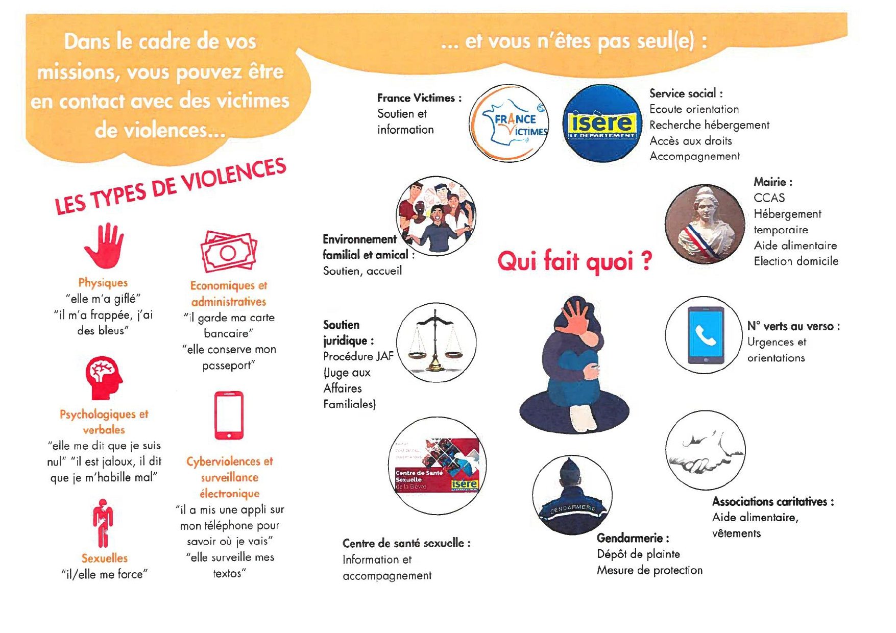 - Une orientation : sur les structures spécialisées susceptibles de régler les problèmes, sur les divers travailleurs sociaux travaillant sur le Territoire (Assistantes Sociales, Conseillère en Économie et Familiale, conseillers en insertion professionnelles…), sur les organismes caritatifs.